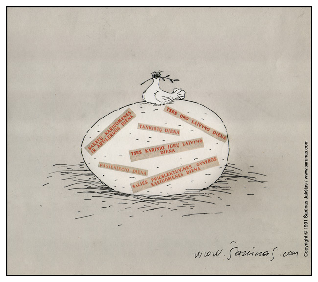 Šitą karikatūrą esu nupaišęs seniai (praeitame amžiuje, Peres…troika laikais). Tikimybė, kad ją kas nors atspausdintų Sovietų Lietuvoje…. buvo nulinė…