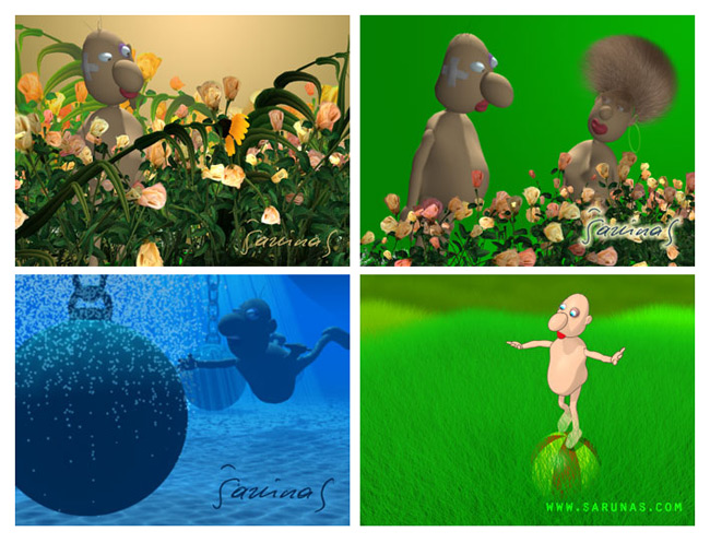 Savistoviai besimokydamas ir nagrinėdamas trimačio modeliavimo ypatumus paraleliai sumodeliavau du animacinius personažus – Adomą ir Ievą, kurie pagal formą, išorinį pavidalą buvo sukurti, tarsi imituojant mano piešiamų karikatūrinių herojų charakteringus bruožus, stilių.