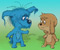 Pirmame komikse pasakojama apie tai, kaip du šuniukai iškylaudami prieina ežerą, prisipučia guminę valtį, o tada apsižiūrėję supranta, kad nepasiėmė irklų. Tuomet Mauriukas atsiveda dvi varlytes, kurios irkluodamos kojelėmis (plaukmenimis) pagelbėja šuniukams plaukti per ežerą. |