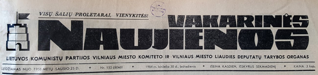 // „Vakarinės naujienos“ (1984 m., Nr. 150 (birželio 30 d.). //
